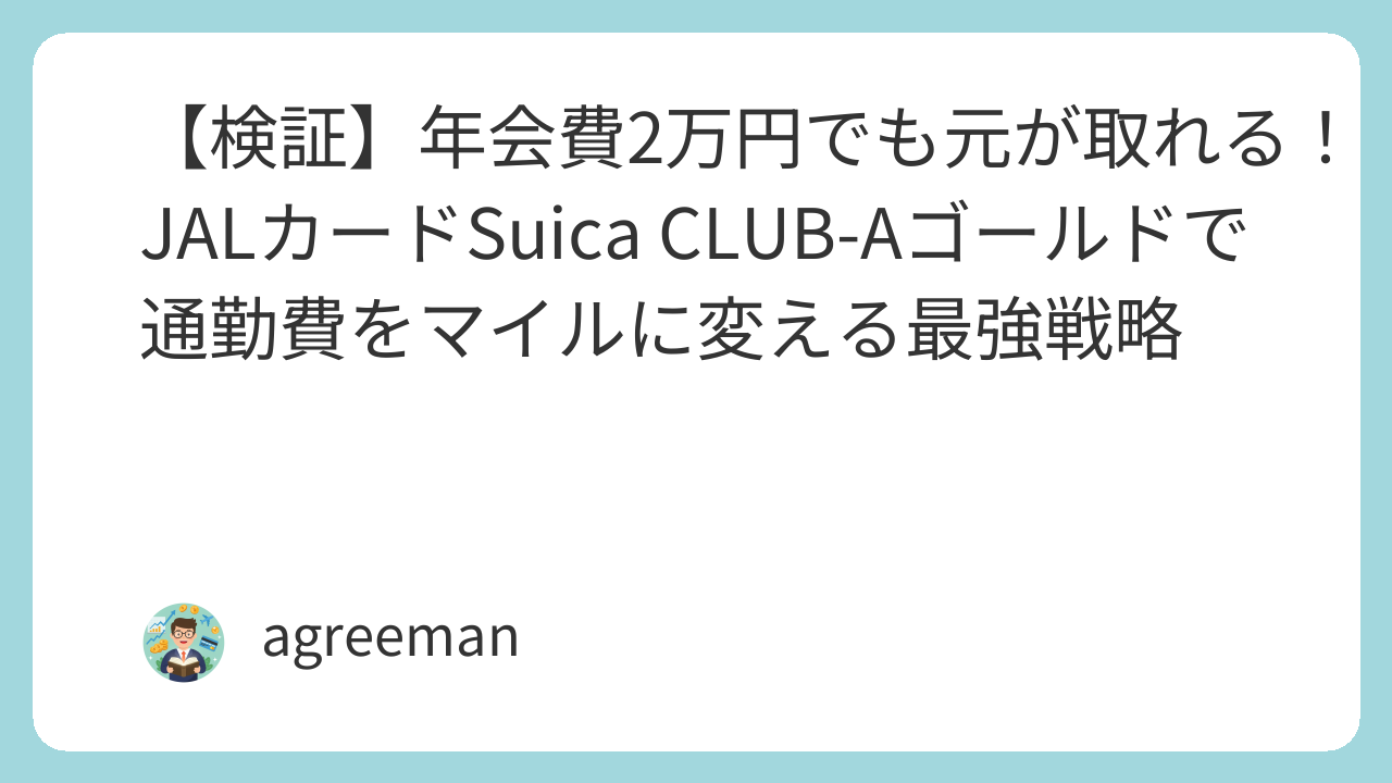JALカードSuica CLUB-Aゴールドは、日々の通勤(陸)と帰省・旅行(空)の両方で最高ランクの還元を受けられる、関東の社会人にとって「最適解」のカードです。