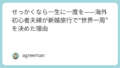 世界一周航空券は、決して手の届かない夢のチケットではありません。むしろ、「せっかくの休み、少し欲張って贅沢に旅したい」という共働きの夫婦にとって、最も賢い選択肢の一つになり得ます。