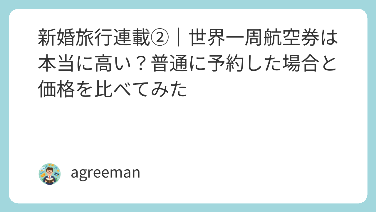 世界一周航空券と、普通に航空券を予約した場合とで、価格感がどれくらい違うのか