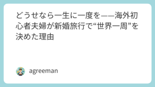 • どうせなら一生に一度を——海外初心者夫婦が新婚旅行で“世界一周”を決めた理由